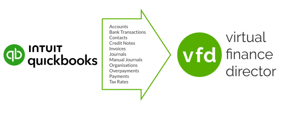 The integration between VFD Pro and QuickBooks is very straight forward, we use the data feeds displayed above to create all reporting and analysis. Information only flows from QuickBooks to VFD Pro, at no point is any data written to your QuickBooks account.