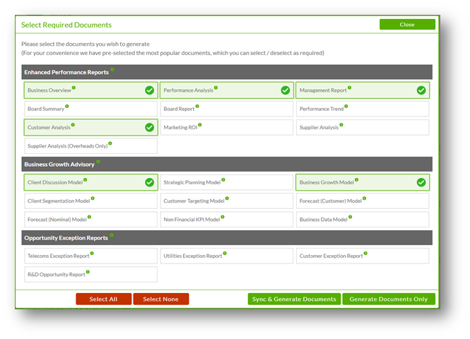 If you do not need to re-sync your data or change the reporting month before producing reports, you now have the ability to generate documents only. Select Sync of Import Data as you ordinarily would to generate your documents and after selecting the reports/models you wish to generate select ‘Generate Documents Only’.